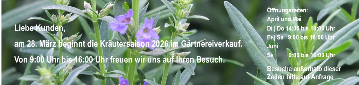 Daneben legen wir sehr viel Wert auf umfassende Beratung unserer Kunden. Wir möchten, dass Sie die gesamte Saison Freude an Ihren Pflanzen haben, gesund und genussvoll kochen, entspannen, Düfte und außergewöhnliche Geschmackserlebnisse erfahren können.